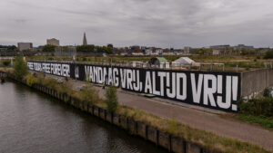 Begin oktober maakten we een mural met de zin ‘Free Today, Free Forever | Vandaag vrij, Lees meer