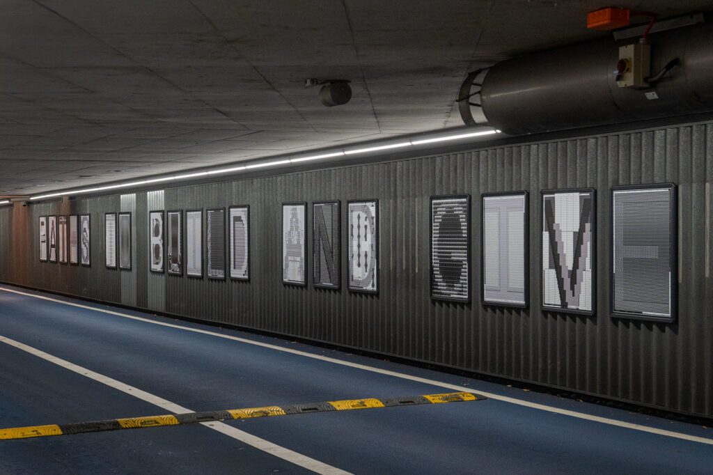 Om de posters binnen korte tijd te kunnen genereren ontwikkelde Studio Studio een parametrische grid-engine die layout, schaal, afstand, ritme en dichtheid aanstuurt, maar toch flexibel blijft. De tegenstelling in macro- en microtekst werd geĂŻntegreerd in de tool, samen met een beperkte set parameters: grootte, contrast, kolommen en rijen. Op deze manier is elke compositie uniek, terwijl het geheel visueel consistent blijft.Â