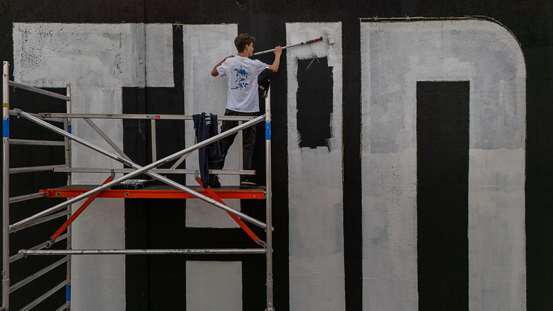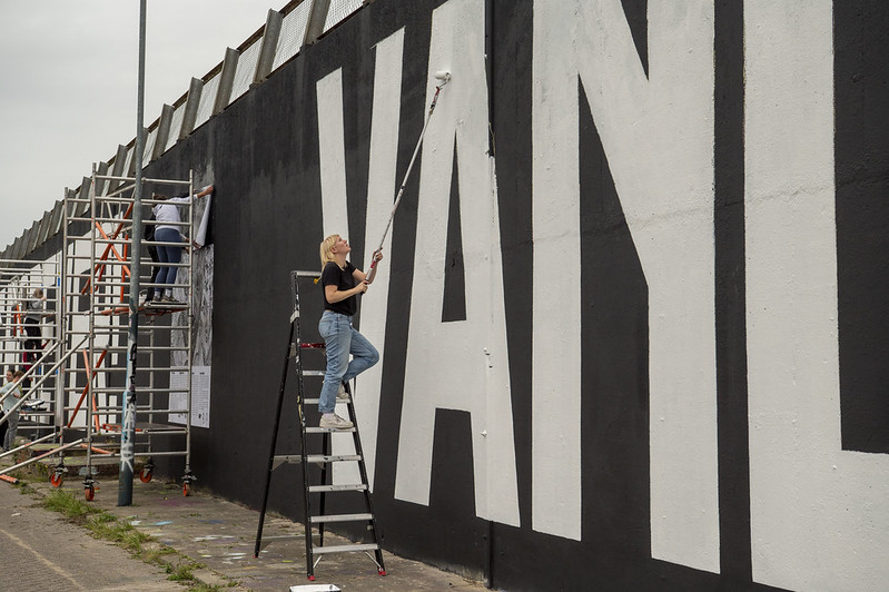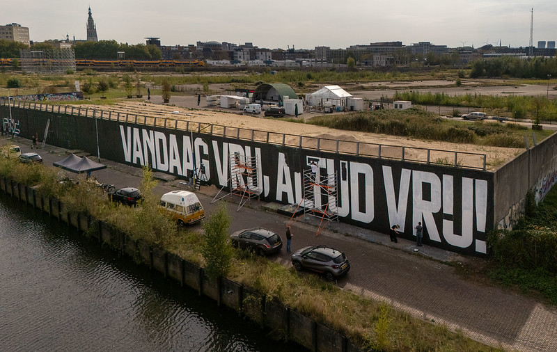 Begin oktober maakten we een mural met de zin ‘Free Today, Free Forever | Vandaag vrij, altijd vrij’. Ruim 60 vrijwilligers hebben deze 105 meter lange en 6 meter hoge, tijdelijke muurschildering in 16 uur gerealiseerd. De tekst is ontleend aan het werk van Surinaamse schrijver, verzetsstrijder en antikoloniaal activist Anton de Kom (1898 – 1945) en staat symbool voor de nog steeds voortdurende strijd voor vrijheid en rechtvaardigheid.